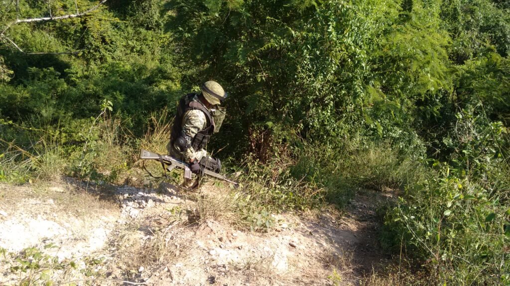 Alrededor de las 12:00 horas, los elementos policiacos y castrenses también conocidos como “BOM” (Base de Operaciones Mixtas) estaban pasando por el lugar ya mencionado, cuando fueron “emboscados” por un enjambre de abejas africanizadas.