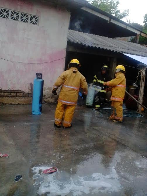 Elementos del Heroico Cuerpo de Bomberos y Protección Civil Estatal lograron controlar y sofocar el incendio de un tanque de gas en la calle Nicolás Bravo de la colonia Centro, de Juchitán, en la Costa Chica.
