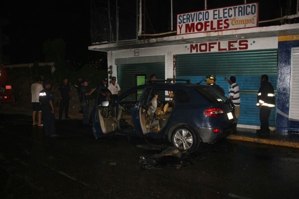 Diferentes corporaciones policiacas y el cuerpo de bomberos se trasladaron al lugar. Al llegar hallaron una camioneta, marca Koleos, tipo Renault, de color azul, ardiendo en llamas y balaceada, por lo que de inmediato sofocaron el fuego.