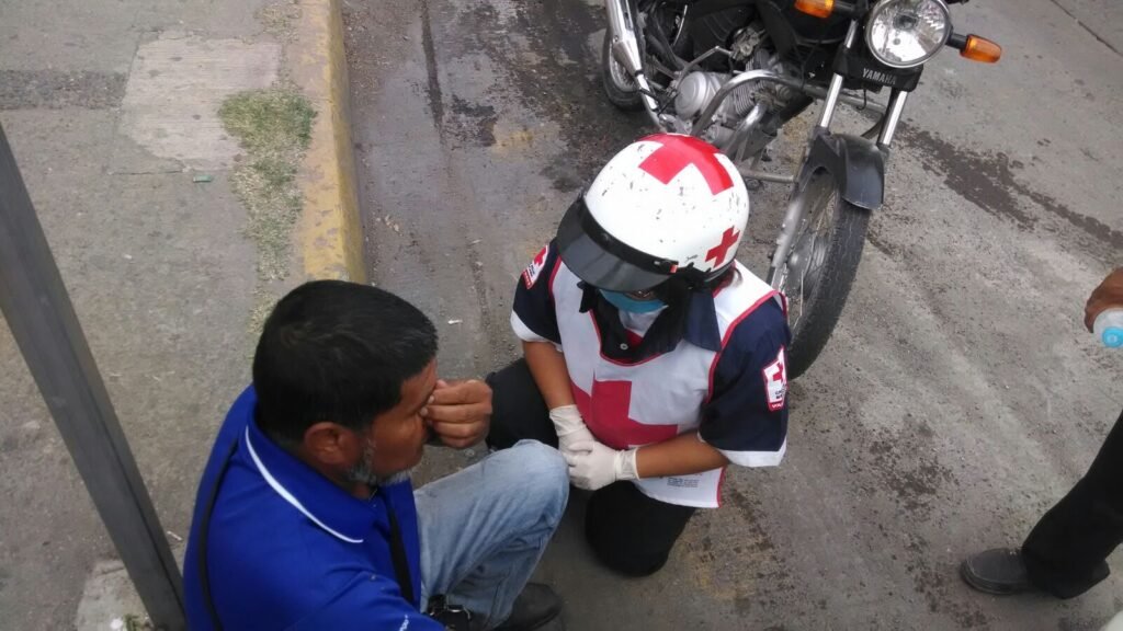 Hasta el lugar del accidente llegaron paramédicos de Cruz Roja, quienes de inmediato atendieron al lesionado, comentándole que era necesario su trasladado a alguna clínica para descartar cualquier fractura.