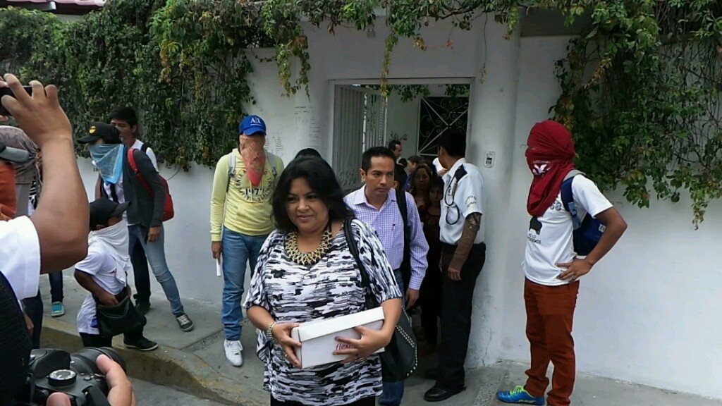 Los inconformes golpearon bruscamente la puerta, pidieron que se desalojaran las oficinas y querían ser atendidos por las autoridades educativas, en esos momentos arribaron al lugar normalistas de Ayotzinapa que reforzaron la manifestación.