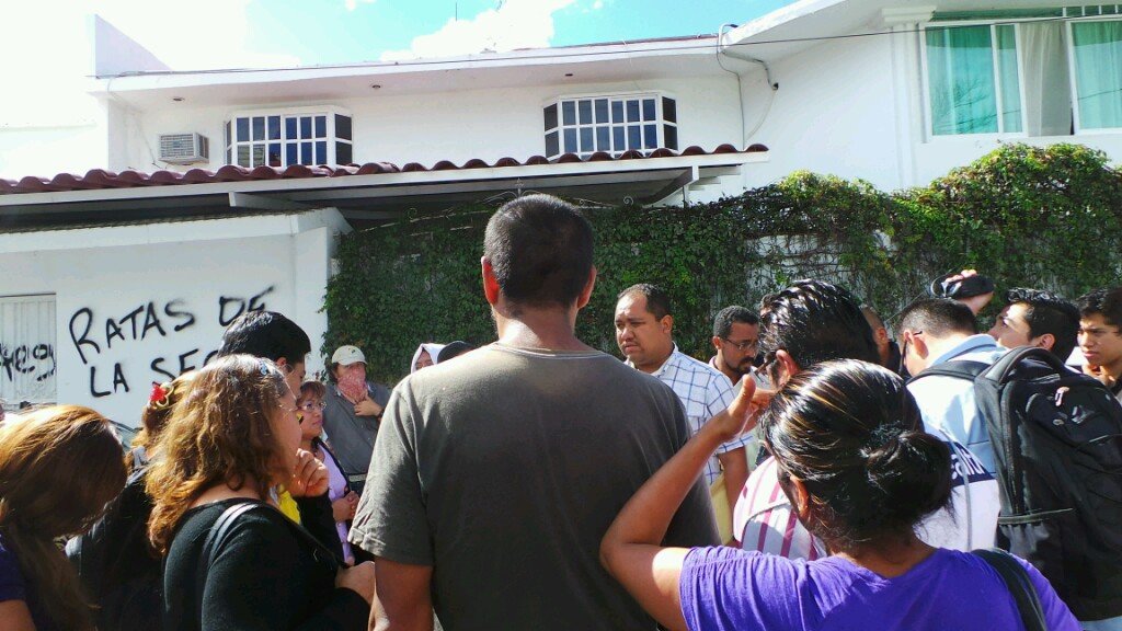En todas las oficinas realizaron pintas con aerosol en las paredes en las que se pudo leer: “y mi sueldo? Ratas”, “y mi segunda parte del aguinaldo? Ratas de la SEG”, “plantón zócalo CETEG”, entre otros mensajes.