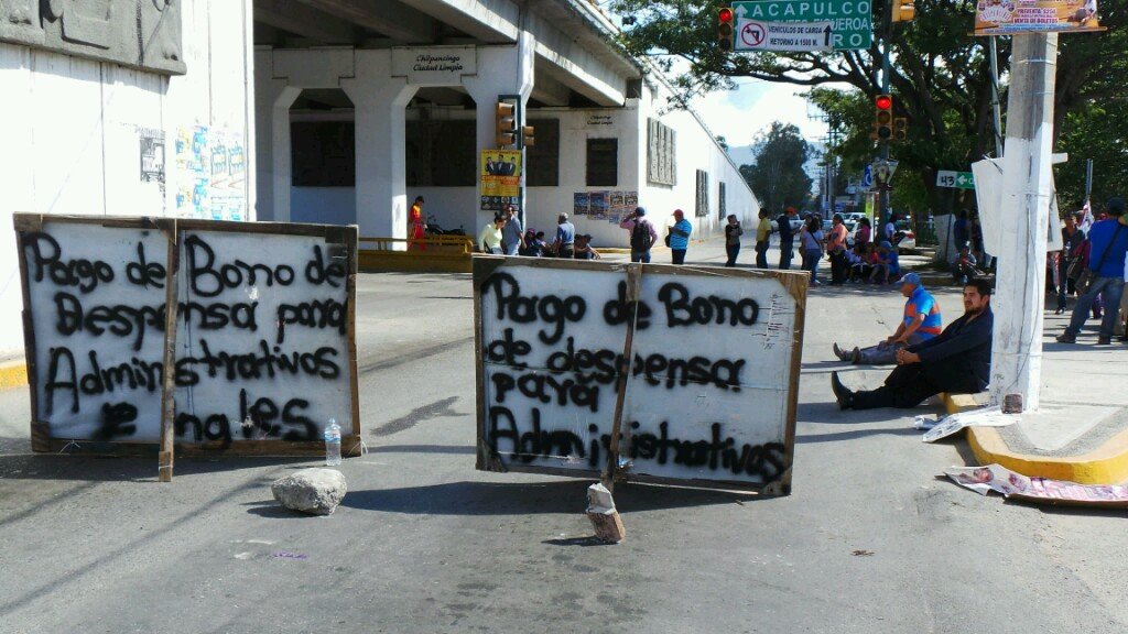 Más de 8 mil trabajadores administrativos de la Secretaría de Educación Guerrero (SEG) no recibieron su bono de despensa anual, como consecuencia, trabajadores aglutinados en la Coordinadora Estatal de Trabajadores de la Educación en Guerrero (CETEG), bloquearon avenidas al sur de la ciudad.