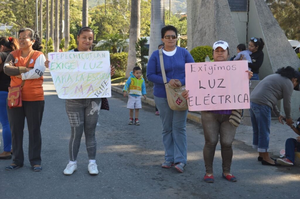 Maestros y padres de alumnos que acuden a la escuela primaria “Ignacio Manuel Altamirano”, ubicada en el poblado de Tepechicotlán, municipio de Chilpancingo, bloquearon la avenida Ruffo Figueroa para exigir el suministro de energía eléctrica para dicho plantel.
