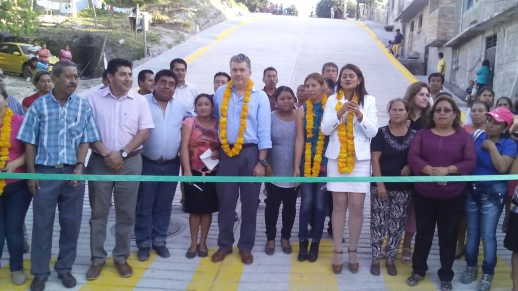 Por la tarde en una intensa gira de trabajo por las colonias del nororiente, Leyva Mena cortó el listón inaugural de la pavimentación con concreto hidráulico de la calle Cerrada de la Estrella, de la colonia Omiltemi, en beneficio de cuatro mil habitantes.