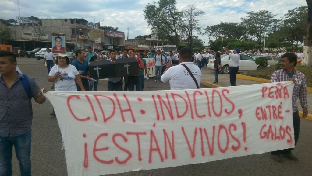 Los docentes también pidieron la presentación con vida de los 43 normalistas de Ayotzinapa, a 16 meses de que fueran victimas de desaparición forzada en Iguala. (API)