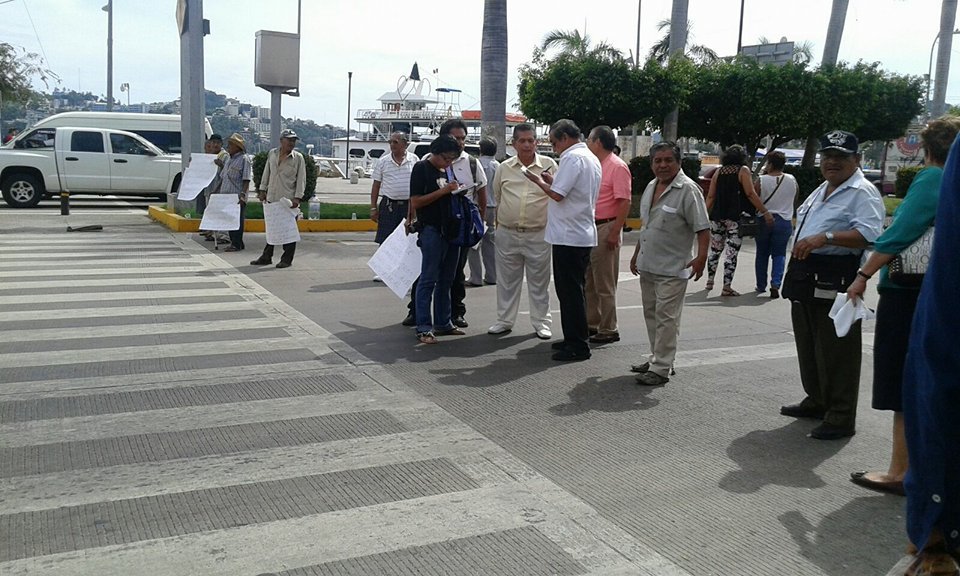 ACAPULCO.— Trabajadores jubilados y pensionados del Instituto de Seguridad Social de los Servidores Públicos del Estado de Guerrero (ISSSPEG) bloquearon la avenida Costera Miguel Alemán, frente al Zócalo, para exigir al gobierno del estado el pago de la segunda mitad del aguinaldo.