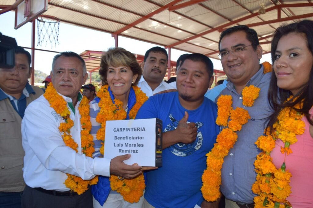 TLAPA.— La presidenta del DIF Guerrero, Mercedes Calvo de Astudillo, acompañada de Margarita Vargas Gavira, mejor conocida como Margarita La Diosa de la Cumbia, entregó proyectos productivos y apoyos para el auto empleo en beneficio de 174 familias de la Montaña, lo que representó un monto superior a los 3 millones de pesos.