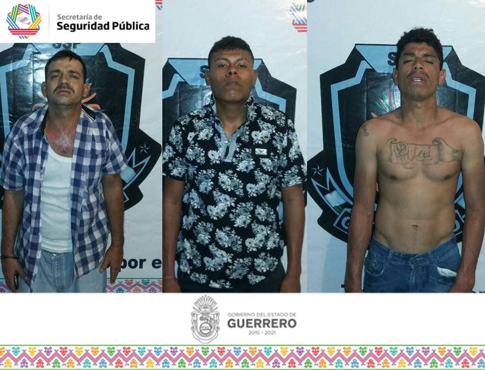 ACAPULCO. —Policías estatales y elementos del Ejército lograron la captura de tres sujetos por el delito de portación de arma de fuego y presuntos delitos contra la salud.