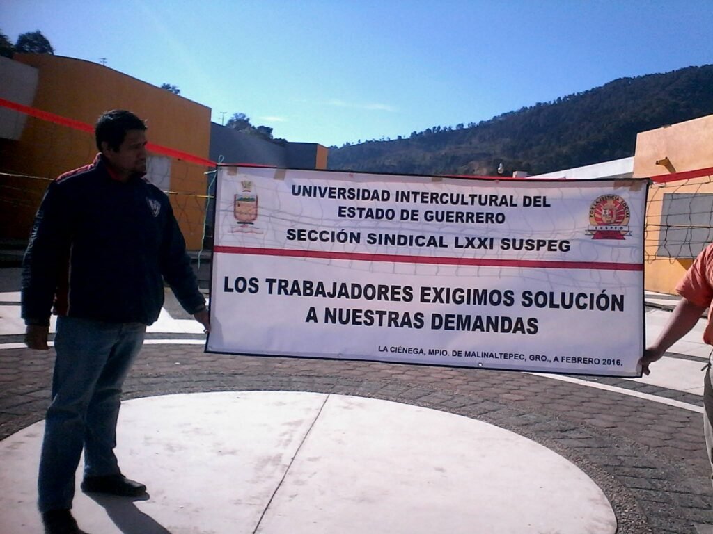TLAPA.— Trabajadores de la Universidad Intercultural del Estado de Guerrero se encuentran en paro de 72 horas, a partir de las once de la mañana de ayer martes, tras un acuerdo el pasado 13 de febrero en asamblea de la sección LXXI del SUSPEG.