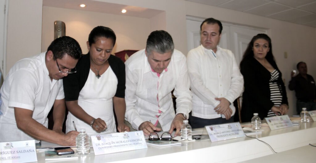 El alcalde Marco Antonio Leyva, ante la presencia del consejero presidente del ITAIGro, Roberto Rodríguez Saldaña; así como los consejeros; Elizabeth Patrón Osorio y Joaquín Morales Sánchez, y el diputado local Irving Granda Castro, se congratuló por el interés que mostraron los funcionarios para que se concretará éste convenio de colaboración, a fin de tener informada a la ciudadanía de todas las actividades que realiza el gobierno municipal.