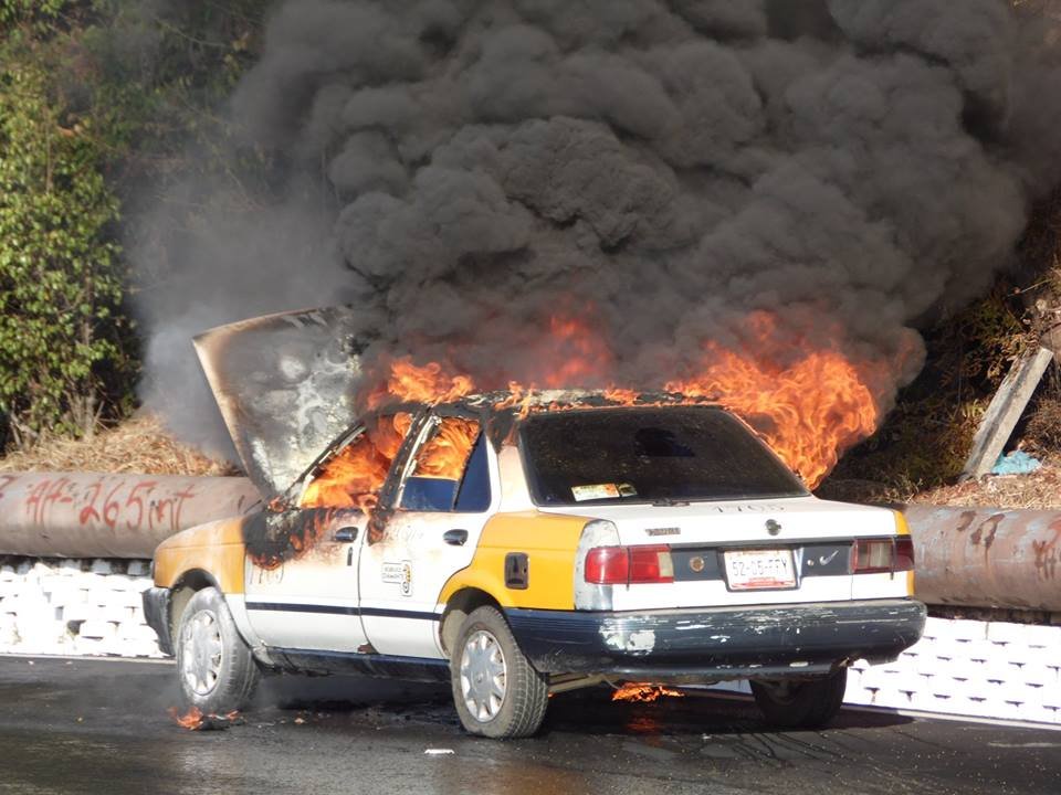 El cuerpo de Bomberos de la Coordinación General de Protección Civil del municipio se trasladó de inmediato al lugar, encontrando un taxi colectivo de la ruta Coloso, con placas 52/05/FFY y número económico 1705, el cual estaba siendo consumido por el fuego.