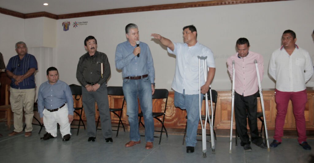 “La verdad son pocos los logros que hemos tenido, pero poco a poco se va caminando y esperemos que antes de que concluya este año, los 81 municipios cuenten con la dirección de Asuntos para Personas con Discapacidad, muchas gracias alcalde por este gran beneficio”, dijo René González Justo, representante de la Fundación Progreso A.C., durante la toma de protesta de Alejandro Hernández Iturio, como nuevo titular de dicha dirección.