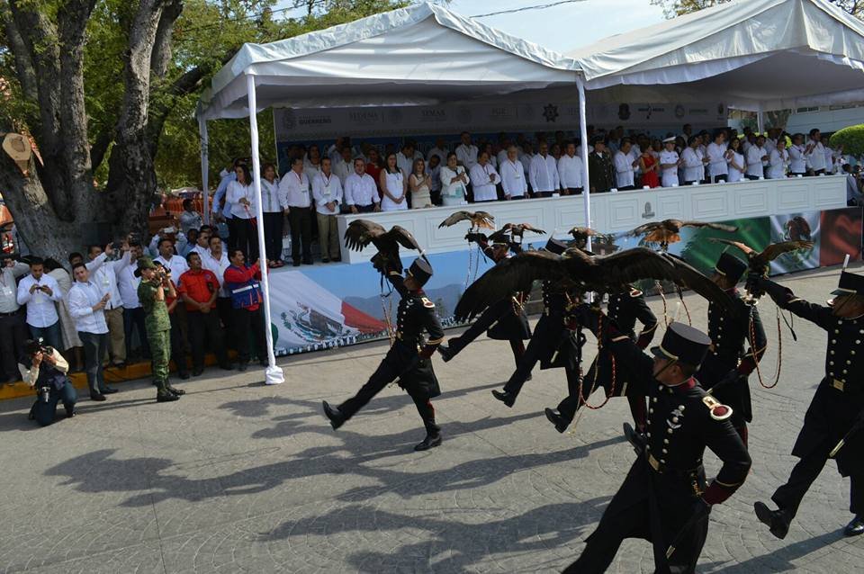 El gobernador dijo que la parada cívico-militar de este miércoles, fue “especialmente preparado en este aniversario de La Bandera en Iguala, me parece que vale la pena ponerle un poco de historia para colocarla en el presente, en este lugar se reunió Vicente Guerrero con Agustín de Iturbide y aquí, como consecuencia de ese encuentro, de la formación de un Ejército, se confeccionó una bandera”.