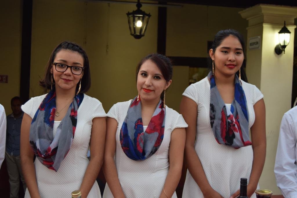 Las bellas edecanes que recibieron a los asistentes a este evento cultural.