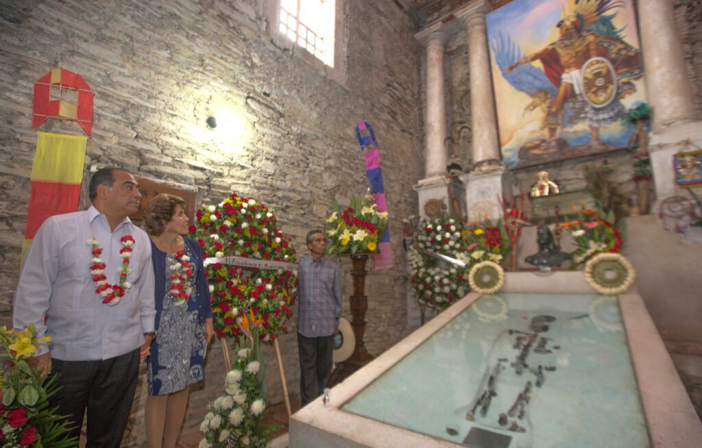 Previamente, realizó un recorrido por las instalaciones del Museo Histórico de Ixcateopan, donde se encuentran gráficas del descubrimiento de los restos de Cuauhtémoc y de la visita del ex presidente de la República, Luis Echeverría Álvarez a Ixcateopan para conocer personalmente los restos del último emperador azteca.