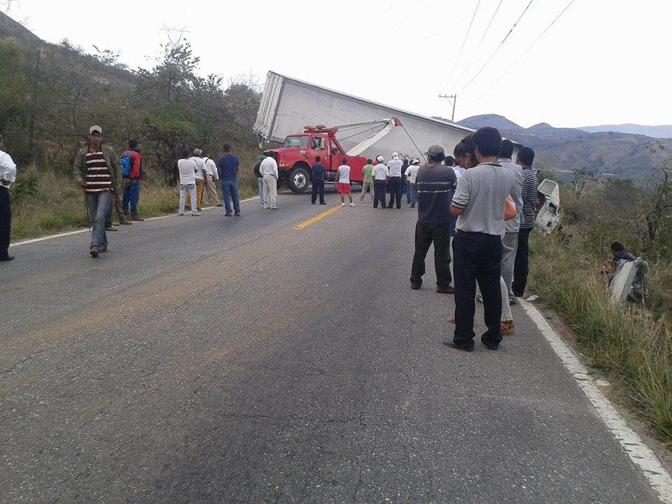 Los hechos se registraron aproximadamente a las 18:25 horas, cuando un tracto camión tipo caja, de color blanco con placas del Servicio Público Federal, conducido por Oscar “N”, circulaba con dirección a esta ciudad capital, el cual perdió el control de la unidad en una curva, lo que originó que se saliera de la carretera.