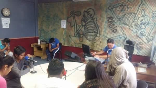 “Queremos hacer de su conocimiento a todo el público en general que ya están desplegadas nuestras convocatorias para todos los jóvenes que están en preparatoria o quieran estudiar para docentes, para que vayan a visitar nuestra escuela y vean en internet cuales son las bases para participar en el proceso de selección y puedan estudiar para profesores en nuestra gloriosa escuela”, dijo uno de los normalistas en la cabina de Capital Máxima, ubicada en el Andador Zapata, en la colonia centro de la capital.