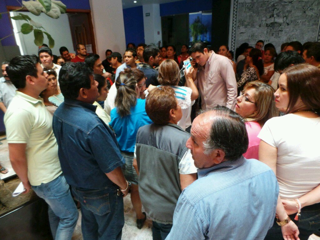 Trabajadores extraordinarios municipales que no están agremiados en ningún sindicato, pararon labores y protestaron en el lobby del palacio municipal en demanda de que su vocero, Salvador Vargas Arriaga, fuera reasignado a su cargo, luego de que este miércoles 16 de marzo se emitiera un documento en donde informan de su rescisión laboral.