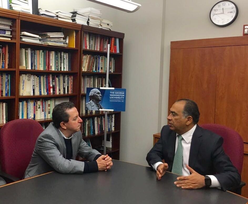 WASHINGTON, D.C.— Como parte de sus gestiones fuera de la entidad, el gobernador Héctor Astudillo sostuvo un encuentro con el director de Proyectos Latinoamericanos de la Universidad George Washington, Roberto Izurieta, con quien acordó realizar eventos de carácter académico en Acapulco, en coordinación con el Gobierno del Estado de Guerrero.
