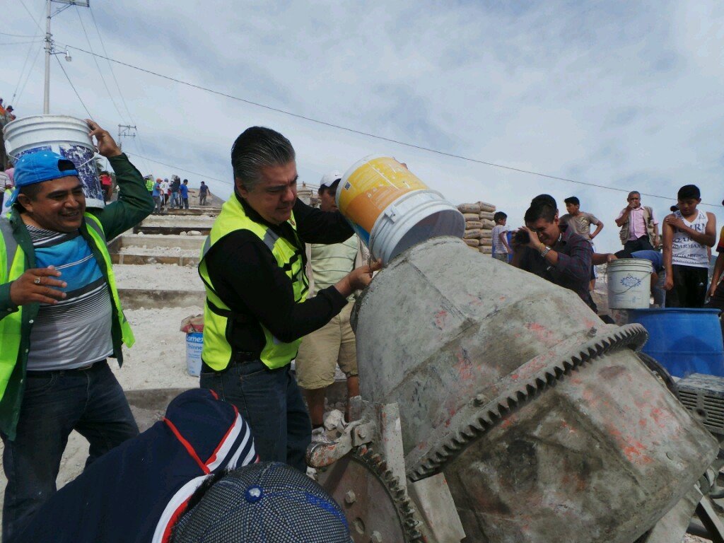 Este sábado, el primer edil encabezó una “Jornada Comunitaria” en la colonia Villa Victoria durante la que trabajó en la pavimentación del acceso principal al lugar, donde el Ayuntamiento apoyó con cemento y grava, mientras que los pobladores apoyaron con la arena y mano de obra para poder realizar obras que mejoren sus condiciones de vida, pues muchas veces el municipio no tiene recursos para contratar a un empresa que haga el trabajo.