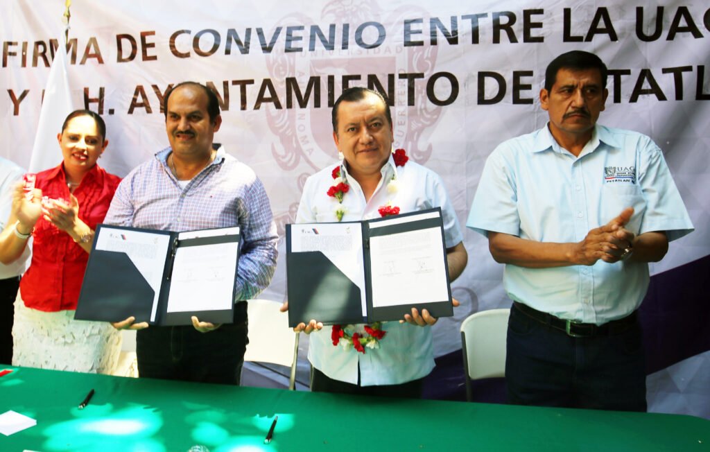 PETATLÁN.— El rector de la Universidad Autónoma de Guerrero, Javier Saldaña Almazán firmó un convenio de colaboración con el presidente municipal de Petatlán, Arturo Gómez Pérez, con el objetivo que los estudiantes de las áreas de la salud realicen brigadas de atención médica e informativa para disminuir los casos de dengue y chikungunya, así como evitar la propagación de la influenza.