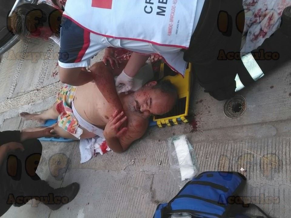 Paramédicos de la Cruz Roja atendieron al herido, el cual presentaba una herida en el hombro derecho y otro balazo en la pierna izquierda y lo llevaron a una clínica particular del puerto.