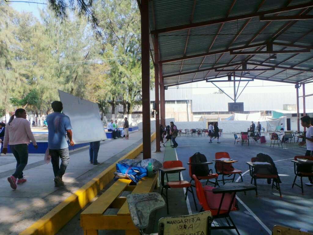 Fue a las 08:00 horas, momento de la entrada a la escuela para iniciar las clases, que padres, docentes y alumnos, poco a poco se llevaron butacas y material a las canchas de la colonia, entonces se instalaron y recibieron clases hasta las 12:30 horas.