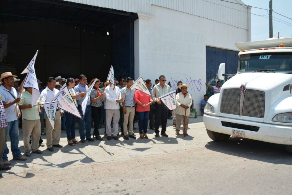 TLAPA.— El alcalde Jesús Noé Abundiz García, acompañado de la síndica Alma Rosa Fuentes Reyes y de los regidores de Desarrollo Rural y de Desarrollo Urbano y Obras Públicas, Luis Enrique Solano Rivera y Laura Portillo Santos, respectivamente, dio el banderazo de la distribución del fertilizante a los productores de granos básicos de este municipio.