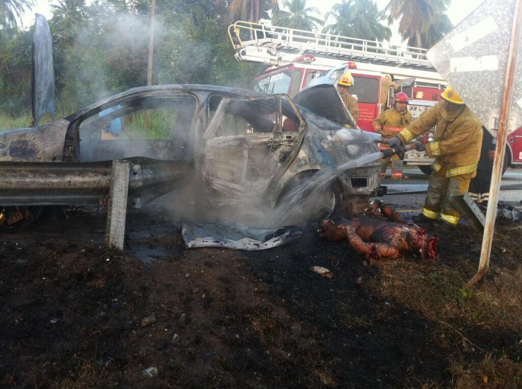 Hasta ese lugar se trasladaron elementos de Protección Civil y de la Cruz Roja, los primeros para sofocar el fuego, pues el vehículo se estaba quemando en su totalidad, mientras que los rescatistas de la benemérita institución acudieron para prestar auxilio médico, sin embargo nada pudieron hacer por el chofer y al parecer único ocupante del automóvil, cuyas características no fueron dadas a conocer debido que quedó totalmente destruido.