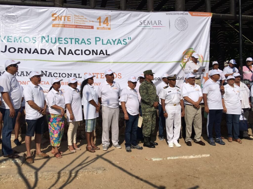 El dirigente de la Sección 14 del SNTE encabezó este domingo una jornada de limpieza denominada “Salvemos nuestras playas” que consiste en convocar a jóvenes estudiantes a recolectar desechos sólidos en los centros turísticos.