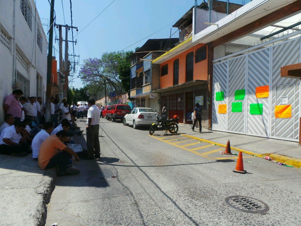 Mediante un altavoz, uno de los inconformes gritaba consignas en contra de Roberto del Moral, mismas que eran coreadas por sus compañeros, que apoyaban la protesta.