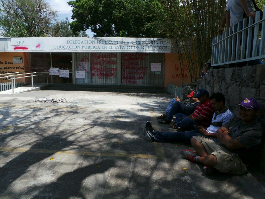 Integrantes de la Coordinadora Estatal de Trabajadores de la Educación en Guerrero (CETEG), irrumpieron en la delegación de la Secretaría Educación Pública (SEP), donde desalojaron al personal, realizaron destrozos y pintas en contra de la pretensión del secretario de Educación federal, Aurelio Nuño Mayer, de cesar a mil 300 docentes que no se evaluaron el pasado 8 y 9 de abril.