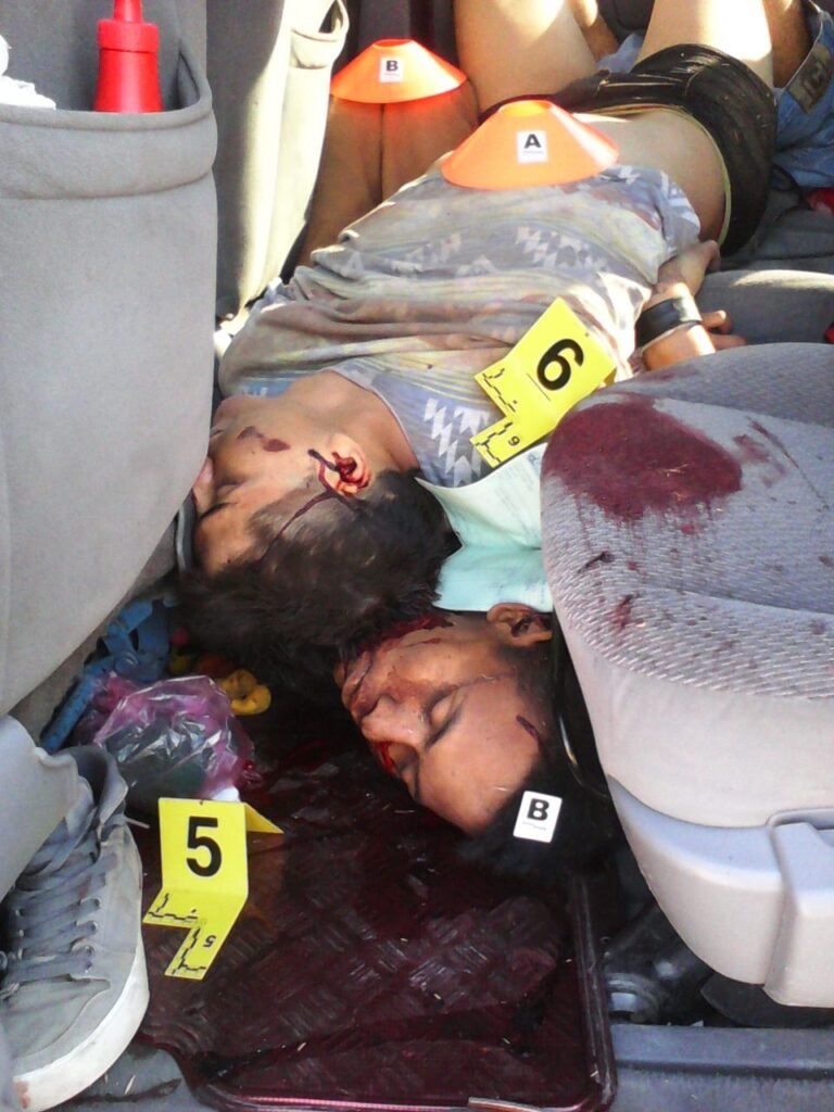 Al seguir revisado, en los asientos traseros de una camioneta Windstar de color vino, con placas HCR3595, hallaron los cadáveres de otros dos hombres que estaban encimados.