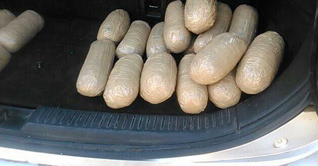 Al hacerle la revisión de rutina le encontró un doble fondo con 10 paquetes confeccionados con cinta plástica que contenían una sustancia color café con el aroma y las características del opio.