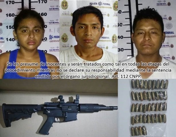 ACAPULCO. — Elementos de la División de Gendarmería detuvieron a tres individuos entre ellos una mujer, que portaban dos armas de fuego cortas y una larga de alto poder, junto con 97 cartuchos útiles de diferentes calibres, sobre la calle Tadeo Arredondo en la colonia Dominguillo, en este puerto.