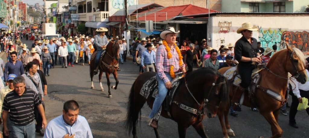 El recorrido concluyó en la plaza de toros “Belizario Arteaga” de las instalaciones de la feria, donde el cantante José Manuel Figueroa ofreció un espectáculo ecuestre y fue nombrado y premiado como Embajador del Mezcal.