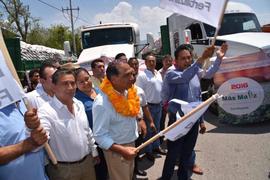 El gobernador encabezó el banderazo de salida de distribución del insumo agrícola para los municipios de la zona Centro, en esta cabecera municipal gobernada por el perredista Pablo Higuera Fuentes.