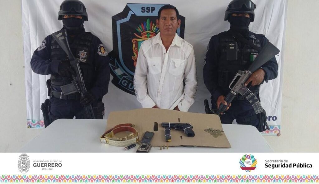 Elementos de la Policía Estatal de la Región Norte lograron la captura de un sujeto que llevaba un arma de fuego de la que no pudo acreditar el permiso para su portación, esto en la carretera estatal de terracería de Atenango del Río a Comala, a la altura de una cancha de futbol.