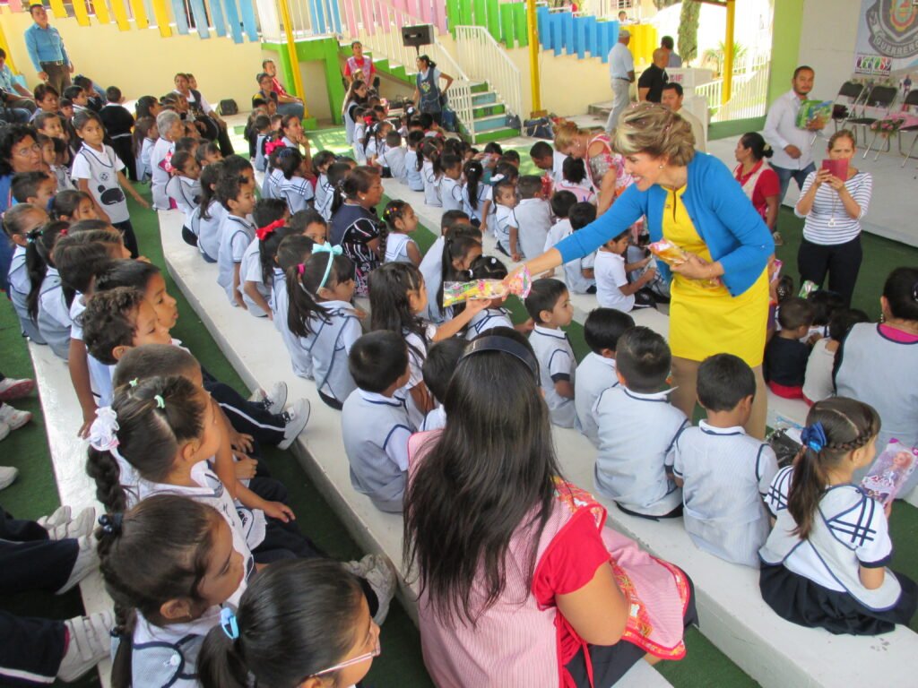 El Programa “El Policía Visita tu Escuela” continuará realizándose en diversas instituciones educativas de nivel preescolar de Chilpancingo; al finalizar el evento la presidenta del DIF Guerrero, Mercedes Calvo de Astudillo entregó juguetes a las niñas y niños del CENDI San Mateo.