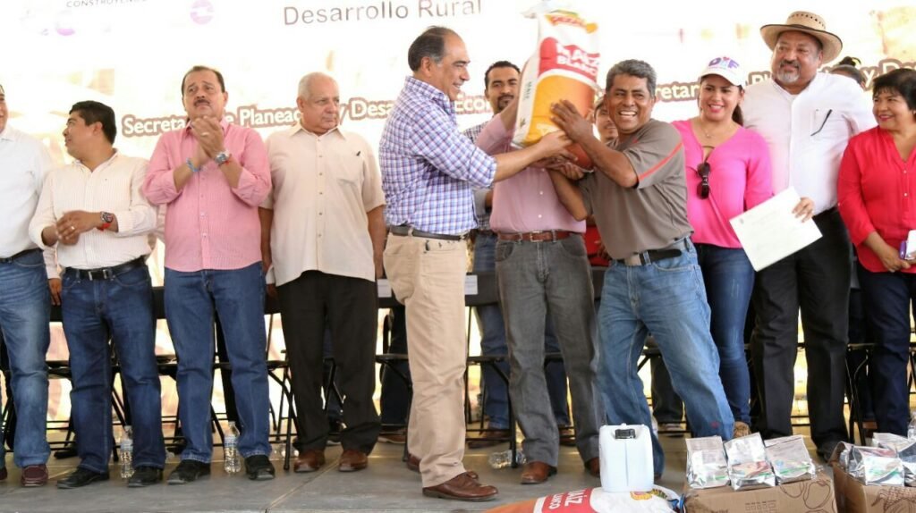 En el poblado de Paso Texca, el mandatario estatal entregó 600 toneladas de fertilizante y poco más de 10 toneladas de semilla de maíz mejorado, a productores que viven en más de diez poblados que integran la llamada Ruta del Sol, como parte de los programas Más Maíz y Fomento Agrícola.
