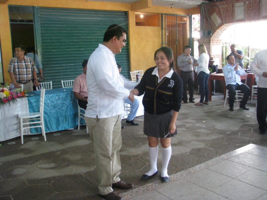 En el acto, Abundiz García entregó reconocimientos, estímulos económicos y presentes a los alumnos de todos los niveles educativos por tener la mejor calificación y sobre una excelencia académica.