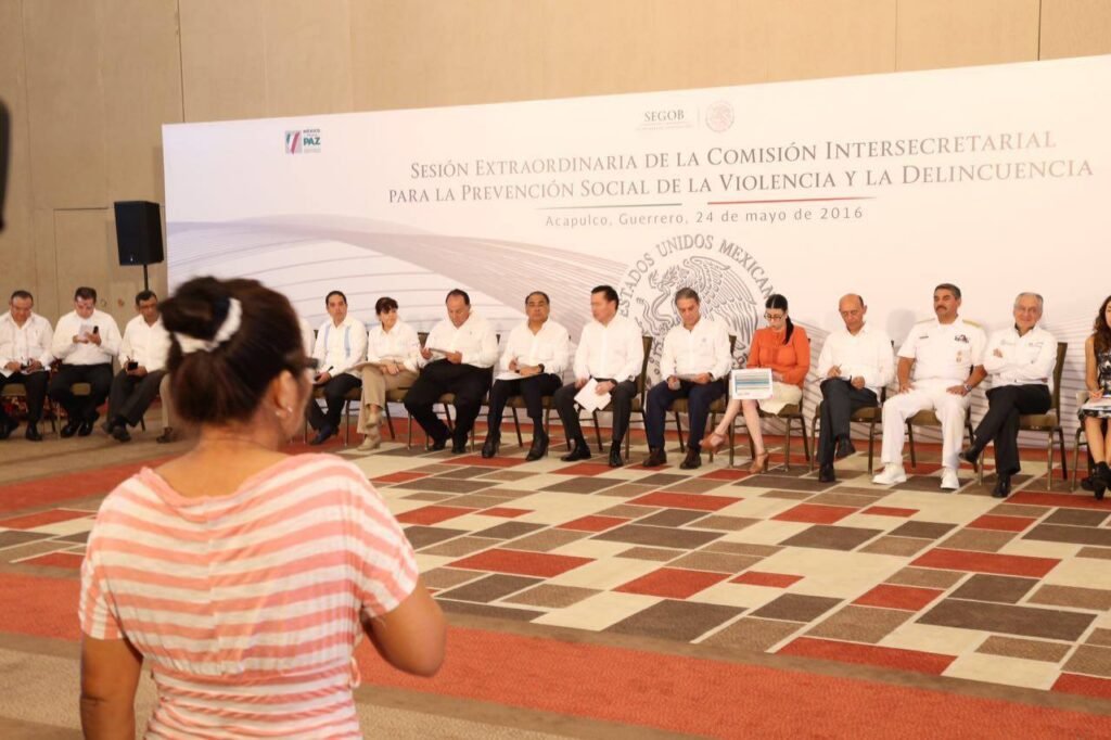 Osorio Chong encabezó aquí, junto con el gobernador Héctor Astudillo Flores, la sesión extraordinaria de la Comisión Intersecretarial para la Prevención de la Violencia y la Delincuencia, con representantes de los tres órdenes de gobierno y diversos sectores de la sociedad, para abordar las acciones en materia de reconstrucción del tejido social.