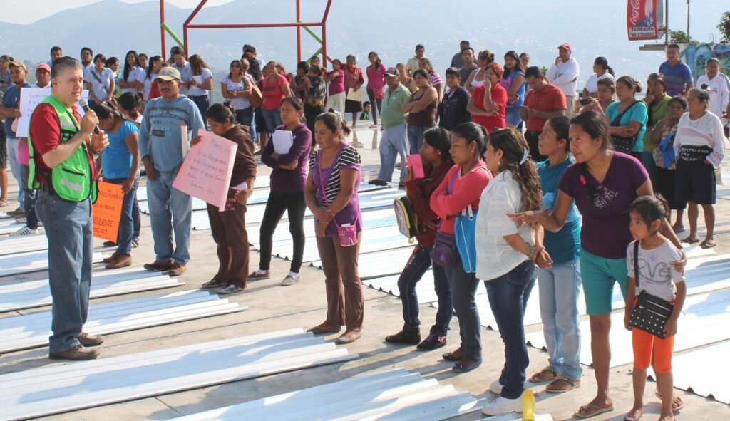 El presidente municipal Marco Leyva Mena, entregó apoyos de programas sociales a familias de escasos recursos económicos, que consistieron en láminas para techos y piso firme para sus viviendas.
