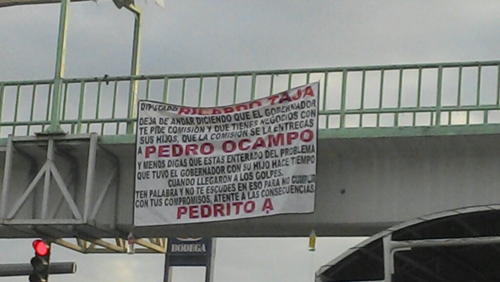 En las mantas, mencionan al diputado Javier Taja de entregar comisiones a una persona de nombre Pedro “N” “N”, por lo que se cree que pudiera ser llamado a declarar, como ha ocurrido en otros casos.