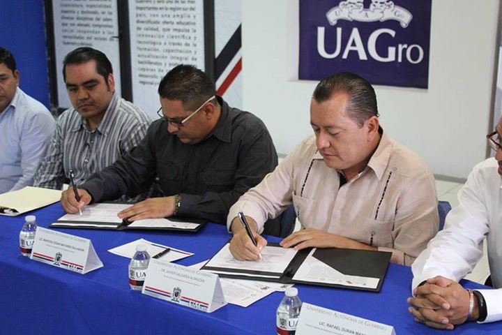 El secretario de Protección Civil del estado, Marco César Mayares Salvador y el rector de la Universidad Autónoma de Guerrero (UAGro), Javier Saldaña Almazán, firmaron un convenio de colaboración para intercambiar capacitación y conocimientos en materia de prevención de riesgos y atención de contingencias.