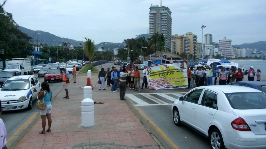 ACAPULCO.— Jubilados y pensionados de la delegación D IV (20) 26 del Sindicato Nacional de Trabajadores de la Educación (SNTE) en Acapulco, protestaron en el Asta Bandera para exigir al gobierno del estado el pago de una serie de prestaciones que les adeudan desde hace 10 años.