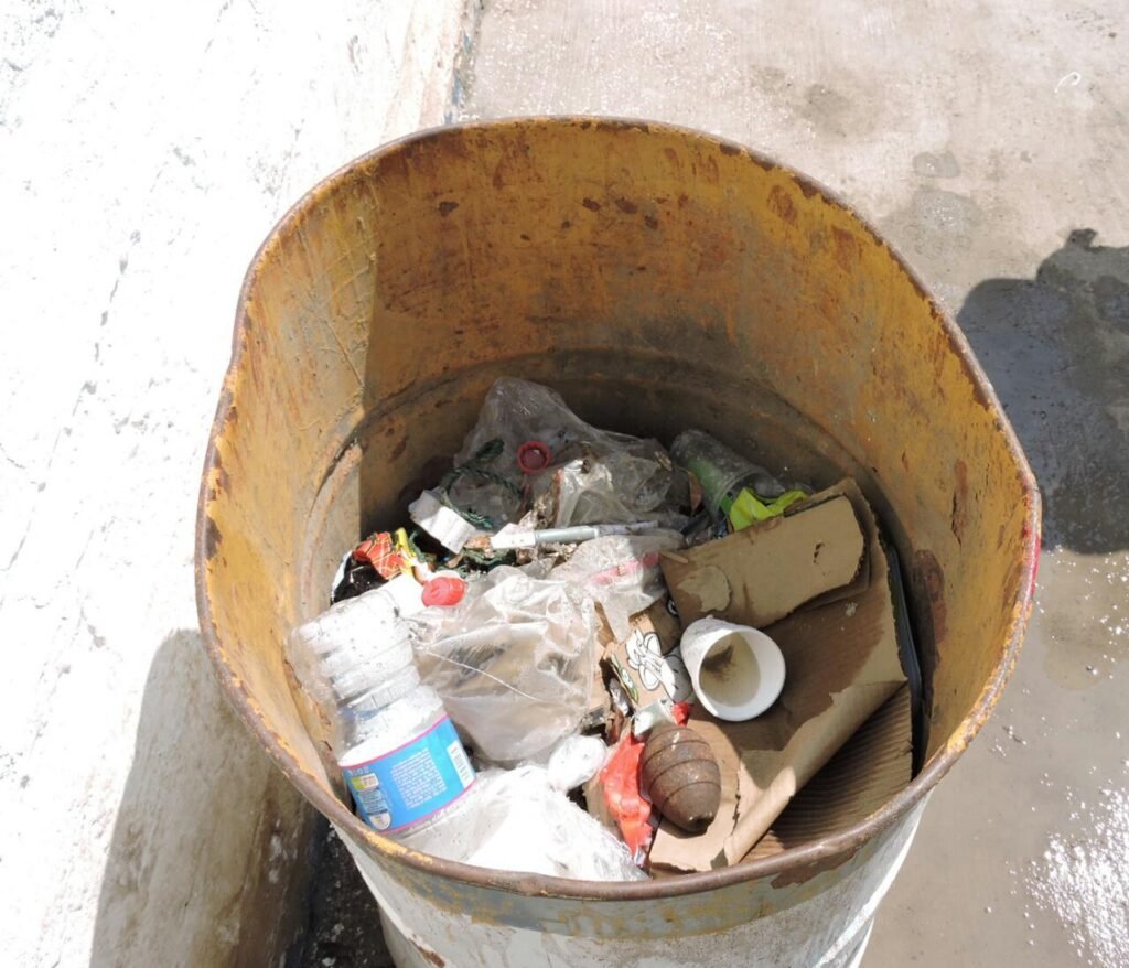 CHILAPA.— Dentro de un bote de basura, en las instalaciones de la empresa “Sonigas”, localizado sobre el bulevar “Eucaria Apreza” a la altura de la colonia Esmeralda, fue encontrada una granada de fragmentación, la cual tuvo que ser llevada por personal táctil del Ejército para que estuviera bajo resguardo y evitar alguna tragedia.