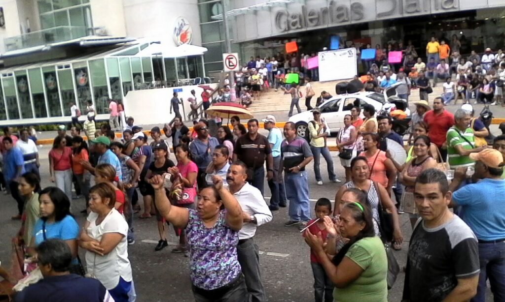 * Este martes, los maestros disidentes marcharon nuevamente en la costera Miguel Alemán y bloquearon la plaza comercial Galerías Diana