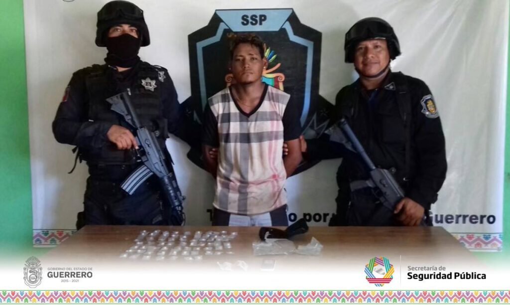 ACAPULCO. — Elementos de la Policía Estatal detuvieron ayer a un sujeto en una de las calles de la colonia Nuevo Puerto Marqués debido a que portaba marihuana y cocaína, la que presuntamente se dedica a vender.